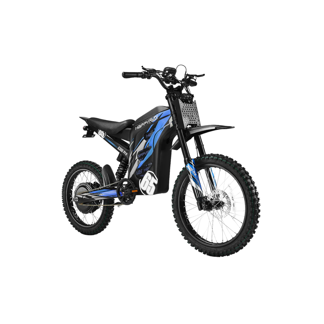 The HappyRun G300 Pro is built for serious off-road riders who want power, range, and durability. Powered by a 3000W mid-mounted motor (4000W peak) and a 72V 30Ah lithium battery, it delivers speeds up to 50+ MPH and a riding range of 50+ miles on a single charge.