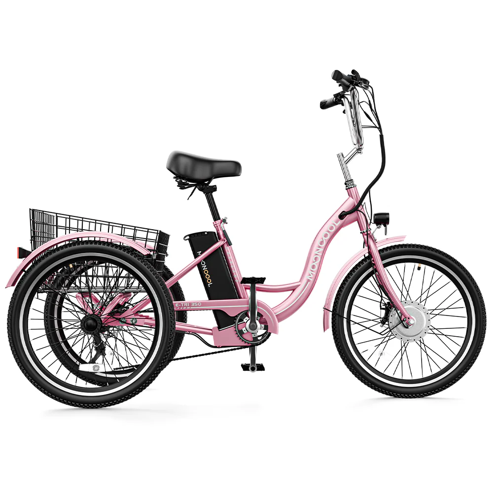 The Mooncool MC 350 Electric Trike combines stability, comfort, and style in one versatile package. With a reliable 350W front-drive motor (700W peak), you can cruise up to 16 mph with confidence. Choose between 24" or 26" wheels for your ideal fit, and 10.4Ah or 14.5Ah battery for the range you need — up to 55 miles on a single charge.