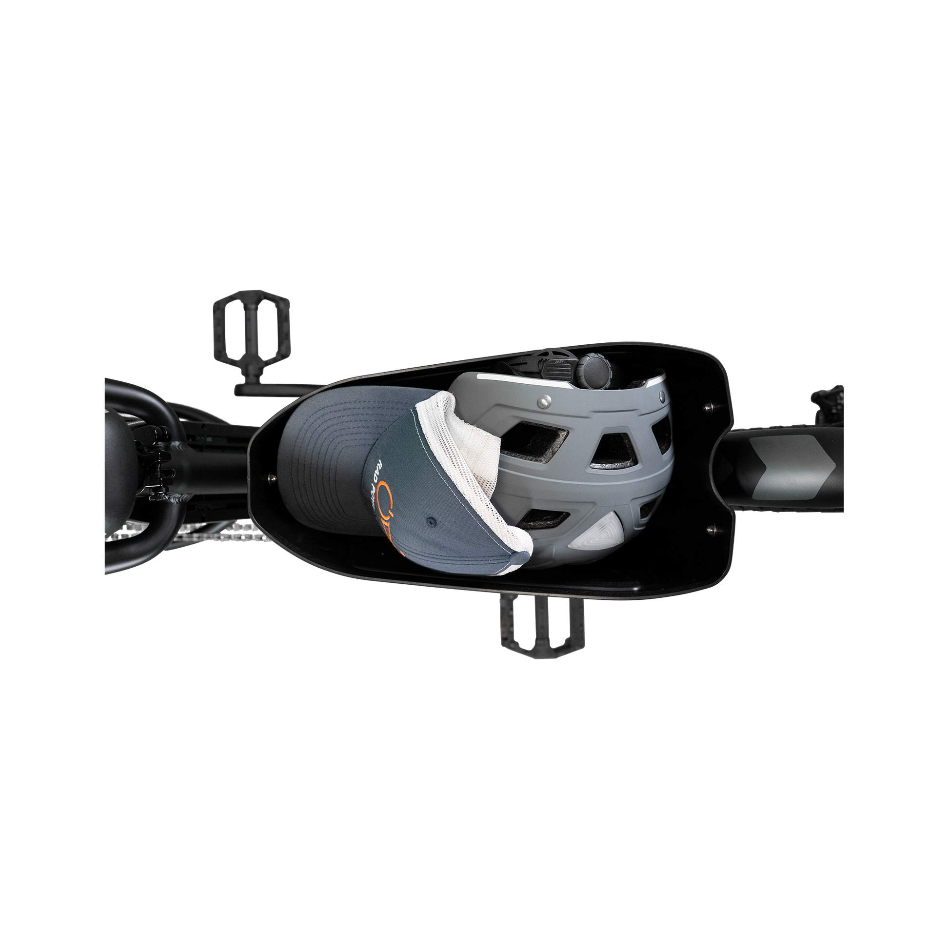 Water-resistant center console with cup holder and phone mount for secure, easy-reach storage on RadRunner 2 and RadRunner Plus.